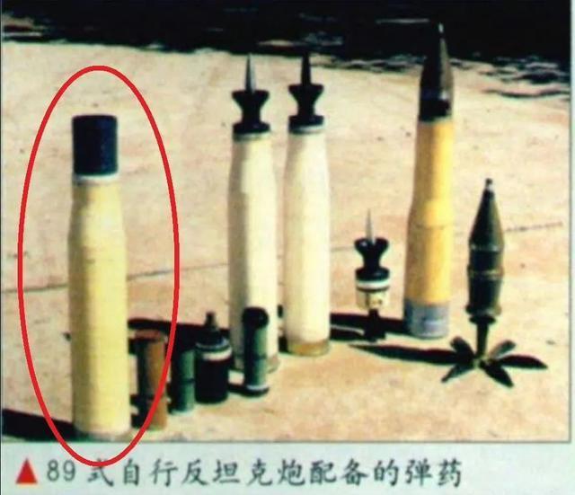说起炮射霰弹,我们解放军也有。89式120毫米自行反坦克炮,就配备有一款120毫米炮射霰弹(红圈里那位“平头哥”)。对步兵或其他目标的打击为例不次于美军的M1028霰弹。